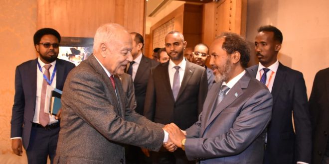 وقال أبو الغيط في منشور على حسابه الرسمي على منصة “إكس”، تويتر سابقا: “تشرفت بلقاء فخامة رئيس الصومال حسن شيخ محمود، مساء اليوم، في القاهرة وأكدت له على وقوف الجامعة العربية إلى جوار الصومال للتغلب على التحديات التي تواجهها، بالذات على إثر التوقيع على اتفاق بين إقليم صومالي لاند ودولة إثيوبيا يمنح الأخيرة ميزة إقامة قاعدة بحرية في أحد مواني ذلك الإقليم”.