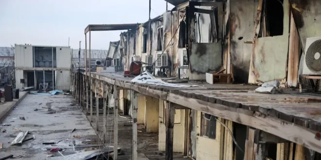 الموقع، بدا مبنى مكون من طابق واحد وقد تفحم بالكامل وظهرت عليه آثار النيران. وفي مناطق أخرى، تحولت مبان عدة إلى أكوام من ​الخشب والمعدن، بينما لم يبقَ سوى