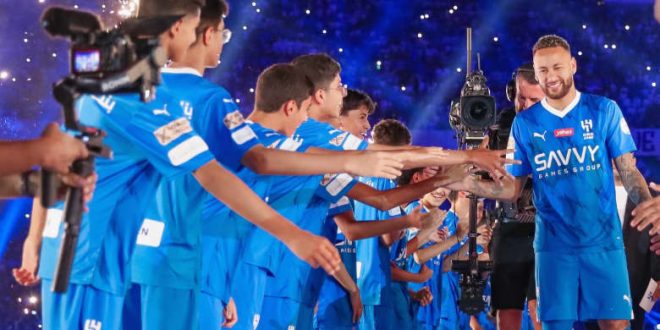 – حظي نيمار دا سيلفا باستقبال حافل، خلال حفل تقديمه كلاعب جديد في صفوف نادي الهلال السعودي، والذي أقيم في استاد الملك فهد الدولي، السبت.