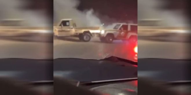 تداول نشطاء على مواقع التواصل الاجتماعي مقطع فيديو لتعامل قوات الأمن السعودية مع سائق صدم سيارة أمنية ولاذ بالفرار.