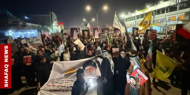 ووثقت كاميرا وكالة، صوراً لأنصار الفصائل العراقية، وهم يتجمعون في ساحة التحرير بمنطقة الباب الشرقي، ووسط محافظة بابل، وهم يرفعون لافتات تندد بأميركا وإسرائيل، وأعلام إيران وفلسطين، وصوراً للمرشد الإيراني الذي اغتالته أميركا، علي خامنئي، وفرشوا الأرض بصور الرئيس دونالد ترمب، ورئيس الوزراء الإسرائيلي بنيامين نتنياهو وأعلام بلديهما، في إشارة لرفض الحرب على إيران والمنطقة.