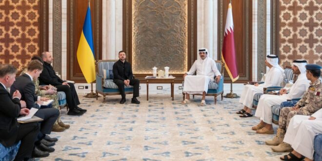 جاء ذلك خلال اجتماع عُقد بين الجانبين، السبت، في قصر لوسيل بالدوحة على خلفية زيارة الرئيس الأوكراني والوفد المرافق له إلى قطر، بحسب ما أوردت وكالة الأنباء القطرية "قنا".