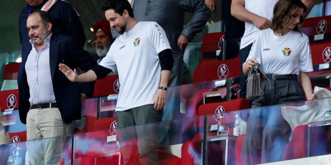 وحضر ولي العهد الأردني وزوجته رجوة خالد السيف على مدرجات استاد أحمد بن علي، إذ حرصا على دعم وتشجيع منتخب “النشامى” في مباراته المصيرية.
