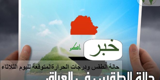 حالة الطقس ودرجات الحرارة المتوقعة لليوم الثلاثاء