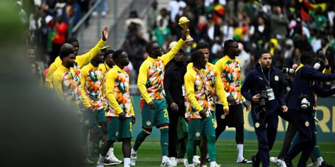 — احتفل لاعبو منتخب السنغال بلقب كأس الأمم الإفريقية 2025 على هامش مباراة مع منتخب بيرو، على أرض ملعب فرنسا، السبت، في مباراة ودّية.