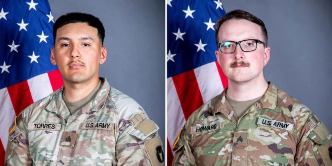 كشف الجيش الأمريكي أن الجنديين الأمريكيين اللذين قُتلا في سوريا، السبت، هما الرقيب إدغار برايان توريس توفار، البالغ من العمر 25 عامًا، من مدينة دي موين بولاية أيوا، والرقيب ويليام ناثانيال هوارد، البالغ من العمر 29 عامًا، من مدينة مارشالتاون بولاية أيوا. وكانا كلاهما عضوين في الحرس الوطني لولاية أيوا.