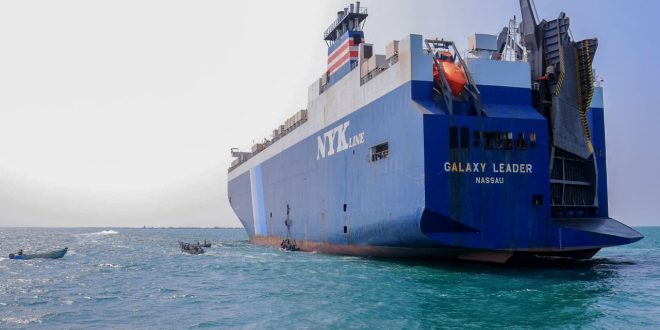 وكان المتمردون الحوثيون في اليمن، استولوا في نوفمبر/ تشرين الثاني الماضي، على سفينة الشحن غلاكسي ليدر في البحر الأحمر، والتي لها صلات برجل أعمال إسرائيلي، وسحبوها إلى سواحل اليمن.