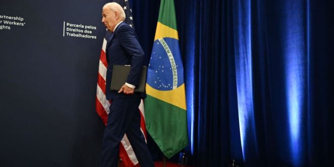 في موقف مُحرج، ترك الرئيس الأمريكي جو بايدن، نظيره البرازيلي لولا دا سيلفا، على المنصة بدون ان يصافحه خلال مؤتمر صحفي عقده الزعيمان على هامش اجتماع الجمعية العامة للأمم المتحدة.