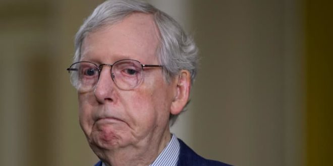 ظهر زعيم الأقلية في مجلس الشيوخ الأمريكي، ميتش ماكونيل، متجمّدًا لمدة 30 ثانية تقريبًا، الأربعاء، أثناء حديثه مع الصحفيين بعد خطاب ألقاه في كوفينغتون بولاية كنتاكي.