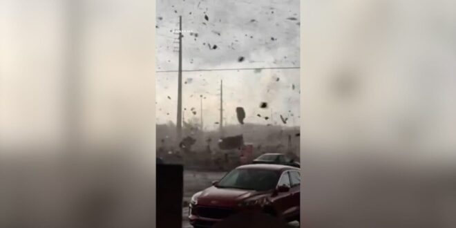 مشهد مرعب لإعصار يقترب بسرعة من أشخاص يحتمون داخل متجر في ميشيغان