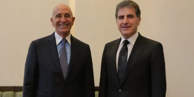 بحث رئيس اقليم كوردستان نيجيرفان بارزاني، والمبعوث الأمريكي الخاص إلى سوريا وسفير الولايات المتحدة لدى تركيا، توم باراك، اليوم الجمعة، النزاع العسكري الذي شهدته المنطقة طيلة 40 يوماً قبل اعلان وقف اطلاق النار، وتداعيات ذلك على العراق بما فيه الإقليم.