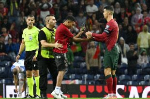 اقتحم أحد المشجعين أرض ملعب مباراة البرتغال وسلوفاكيا، الجمعة، ضمن منافسات التصفيات المؤهلة لكأس أمم أوروبا 2024، للقاء النجم البرتغالي كريستيانو رونالدو. ودخل المشجع للمستطيل الأخضر والتقى باللاعب البالغ من العمر 38 عاماً، قبل أن يعانقه ويلتقط صورة تذكارية معه، ثمّ احتفل على طريقته الشهيرة “Siii”. وأخرج رجال أمن الملعب …