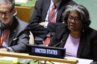 أعلنت السفيرة الأمريكية لدى الأمم المتحدة ليندا توماس غرينفيلد ، أن بلادها مستعدة للتصويت على مشروع قرار لمجلس الأمن الدولي بشأن غ-زة بعد تأجيله عدة مرات. وقالت غرينفيلد، للصحفيين: “أريد فقط أن أشارككم أننا عملنا بجد واجتهاد على مدار الأسبوع الماضي مع الإماراتيين، ومع آخرين، ومع مصر، للتوصل إلى قرار …