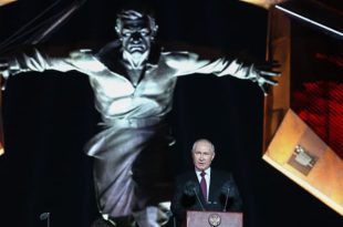 كان الرئيس الروسي فلاديمير بوتين، الأربعاء، في منطقة كورسك يقود حفل الذكرى الـ80 لمعركة كورسك التي انتصر فيها الجيش السوفيتي على النازيين عام 1943 خلال الحرب العالمية الثانية، بينما وردت الأنباء عن تحطم طائرة كان على متنها زعيم مجموعة فاغنر للمرتزقة يفغيني بريغوجين. وألقى بوتين خطابا في الحفل الرسمي، وقدم جوائز …