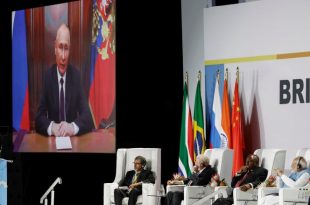 قال الرئيس الروسي فلاديمير بوتين، الثلاثاء، إن “التخلي عن الدولار كعملة عالمية عملية لا رجعة فيها”، وأضاف أن دول مجموعة البريكس “تناقش مجموعة كاملة من القضايا المتعلقة بالانتقال إلى العملات الوطنية في جميع مجالات التعاون الاقتصادي بين دولنا الخمس”. وتابع بوتين، خلال كلمة افتراضية ألقاها أمام قمة البريكس المنعقدة في …